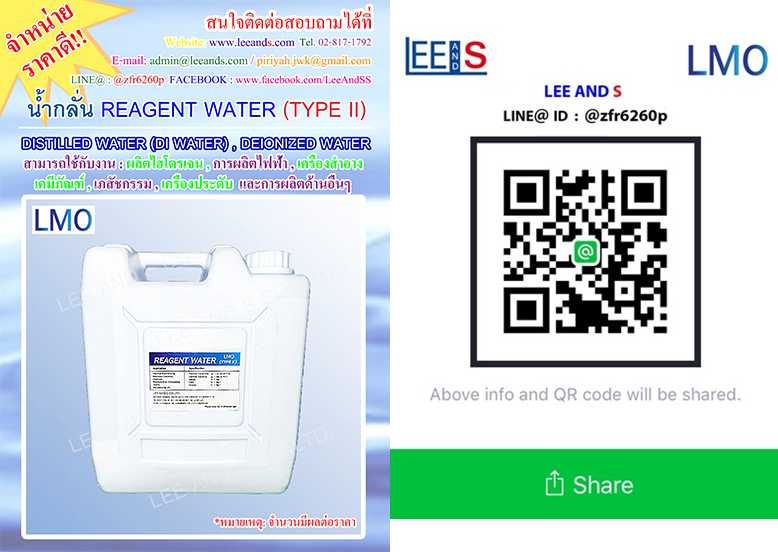 น้ำกลั่น / Reagent Water (Type II) DI Water